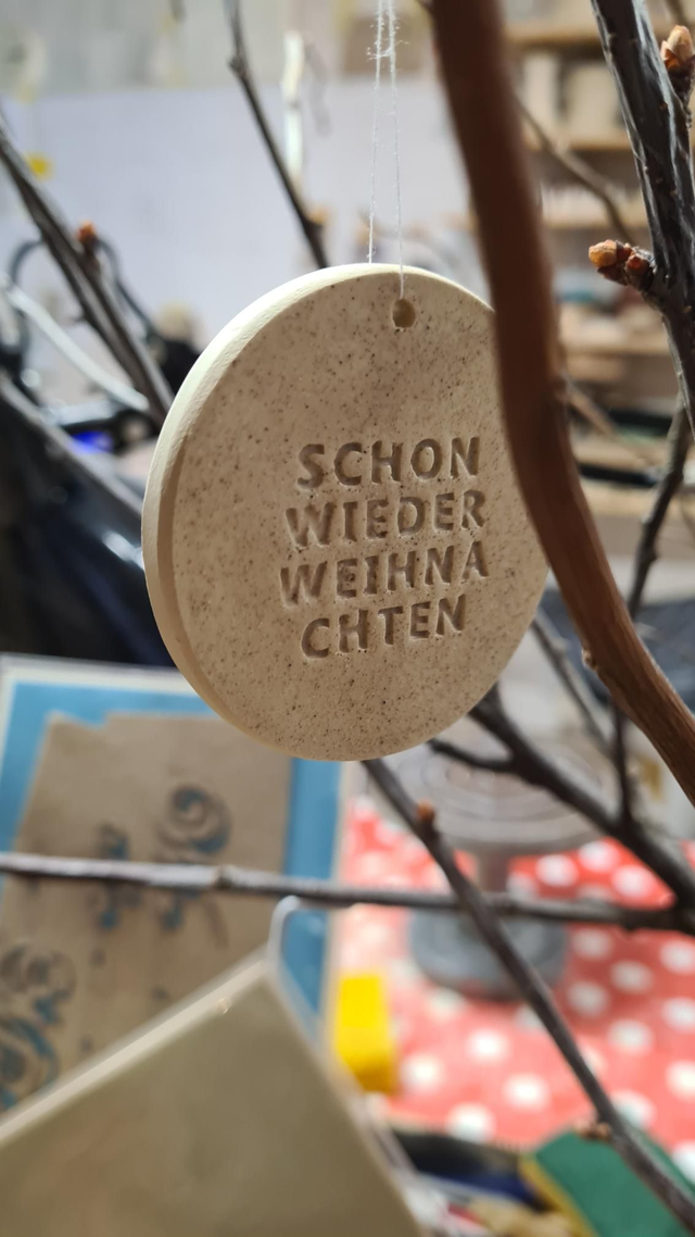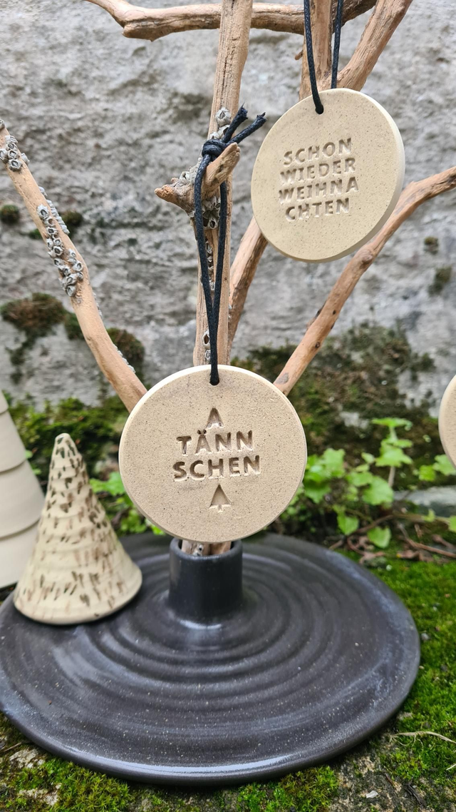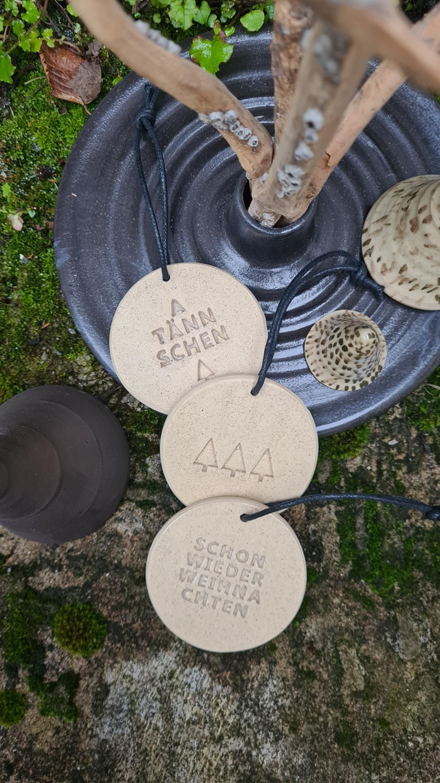 3 runde Anhänger für Geschenke, Äste, Weihnachtsbaum.